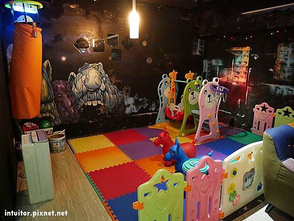 地下室有卡啦ok,投入代幣後可以開心開唱,兒童可在遊戲區玩耍,如果有玩伴的話爸媽們的歡唱時間能夠維持更久。