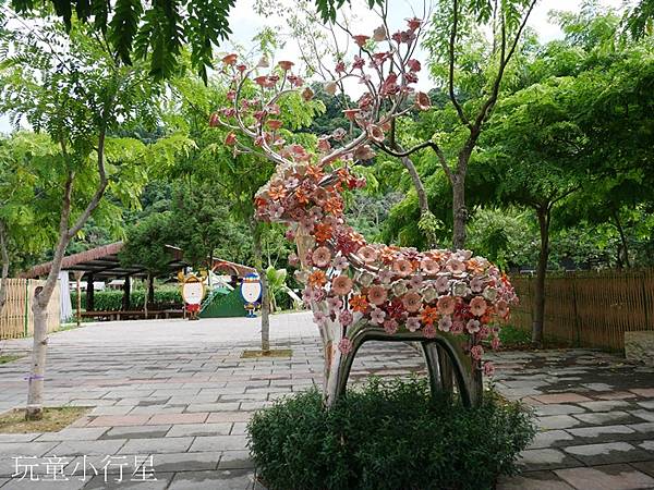 園區內隨處可見木製的梅花鹿意象藝術品
